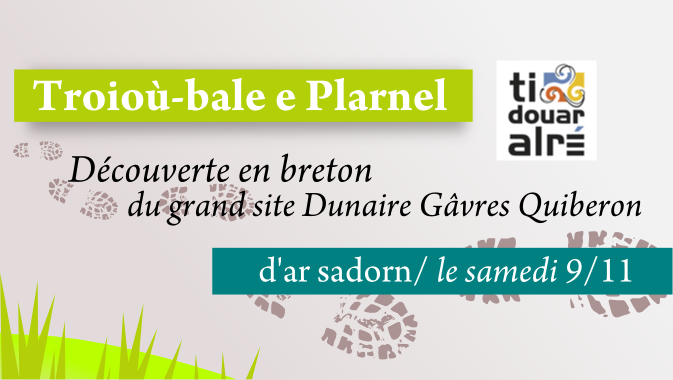 - samedi prochain (le 9 novembre) : à Plouharnel, balade animée en breton par Patrick Dréan organisée par le Grand Site Dunaire Gâvres-Quiberon et Ti Douar Alre. Cette marche avec Patrick Dréan sera l'occasion de découvrir un paysage à la biodiversité remarquable à l'échelle de la Bretagne.